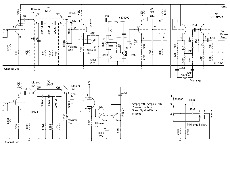 Schematic of the V4B pre amp (1971) (Joe Piazza)