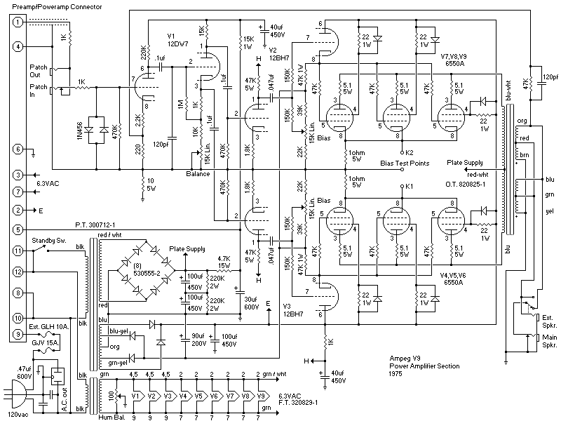 Schematic of the V9 power amp (Ampeg)